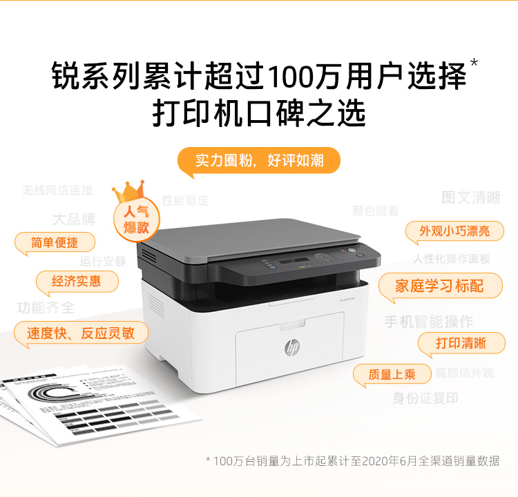 当前位置: 首页 > 办公设备 > 打印机 > 激光打印机 > 惠普 (HP) 136w 锐系列新品黑白激光多功能一体机 三合一 打印复印扫描
