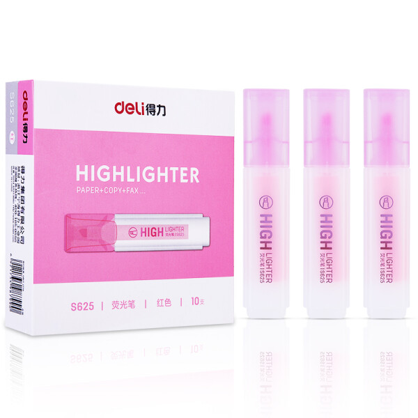 得力淡色系荧光笔划重点标记笔做笔记绘画水性彩色记号笔 斧式笔头 红色