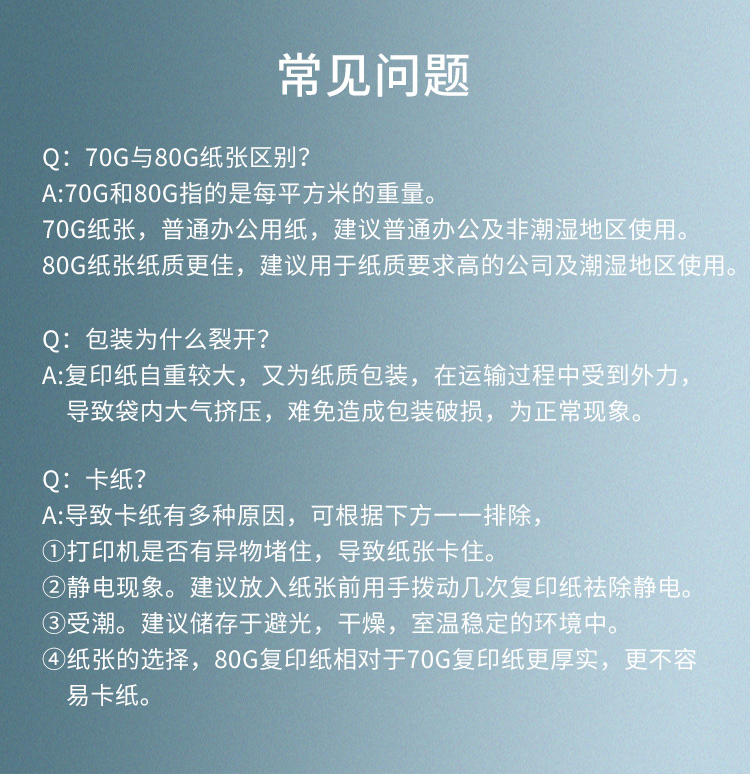- 复印纸规格: A4