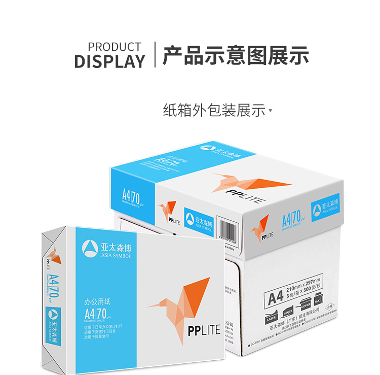当前位置: 首页 > 办公用纸 > 亚太森博 PP Lite(小鸟)70g A4 复印纸 500张/包 5包/箱