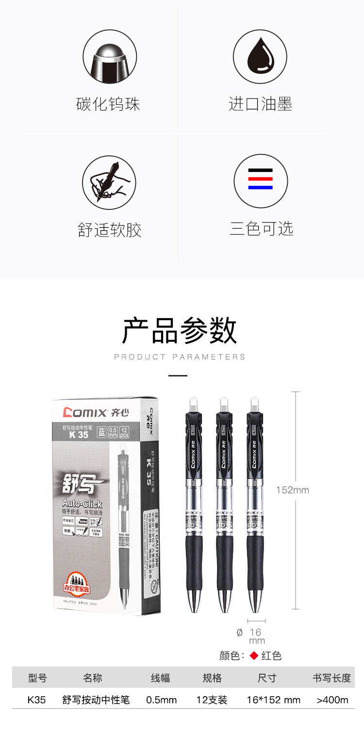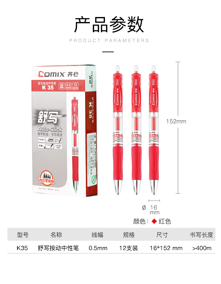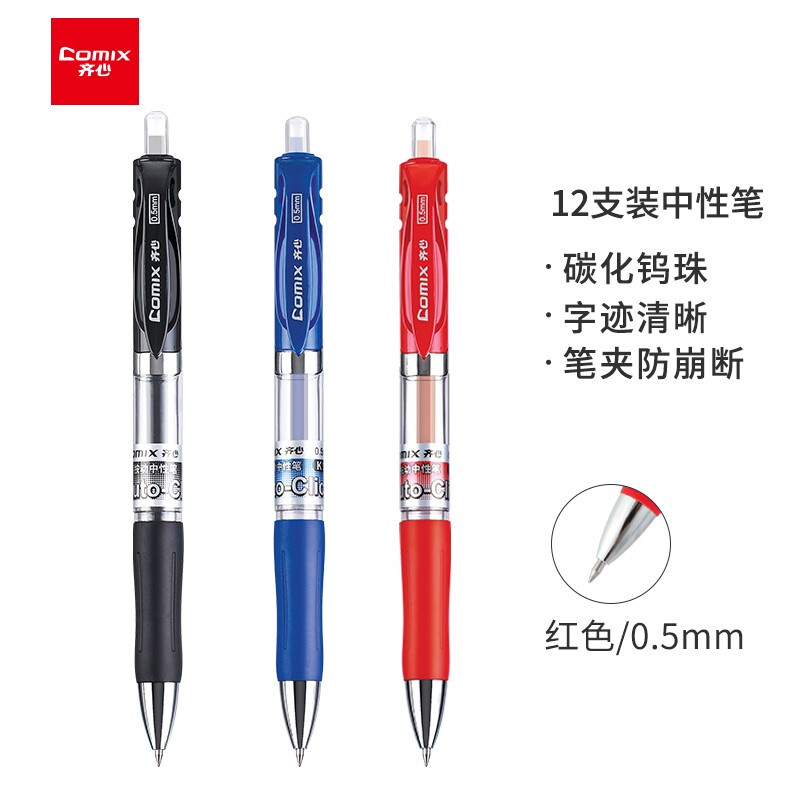 当前位置: 首页 > 书写工具 > 齐心(COMIX) EK35 舒写按动中性笔/水笔/签字笔 书写工具 0.5mm 红色 12支装