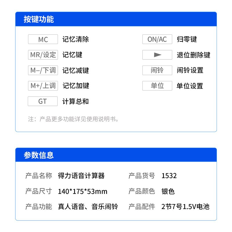 当前位置: 首页 > 办公设备 > 得力(deli)12位带闹铃语音办公桌面计算器计算机 白色DL-1532